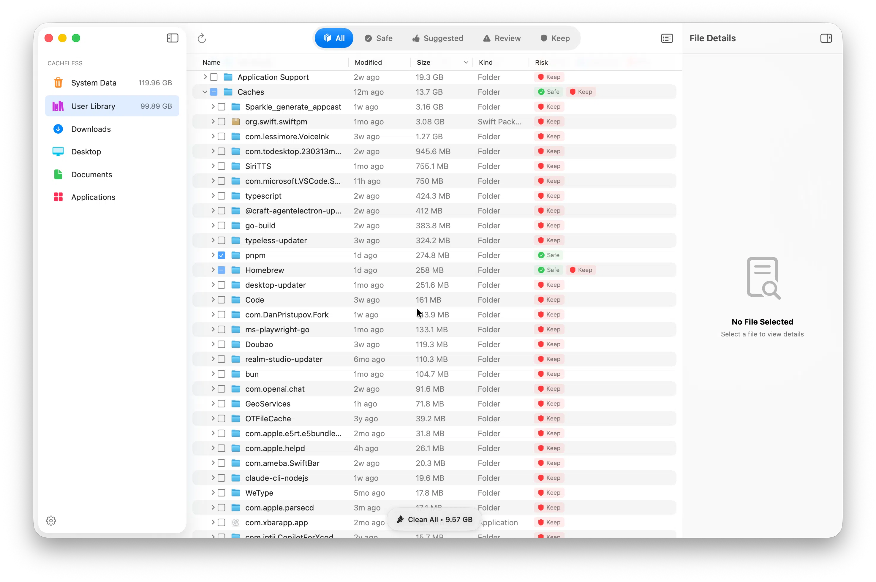 Going through all of this manually works, but it's tedious and easy to miss things. Cacheless scans your entire Mac and surfaces everything that's safe to delete, organized by category and risk level.